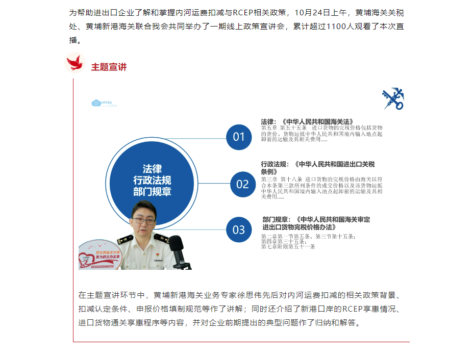 黄埔海关关税处、新港海关联合我会举办海关线上政策宣讲会