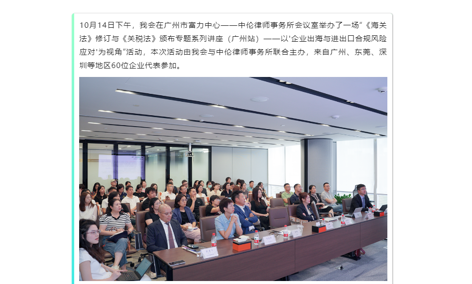 《海关法》修订与《关税法》颁布专题系列讲座(广州站)顺利举办