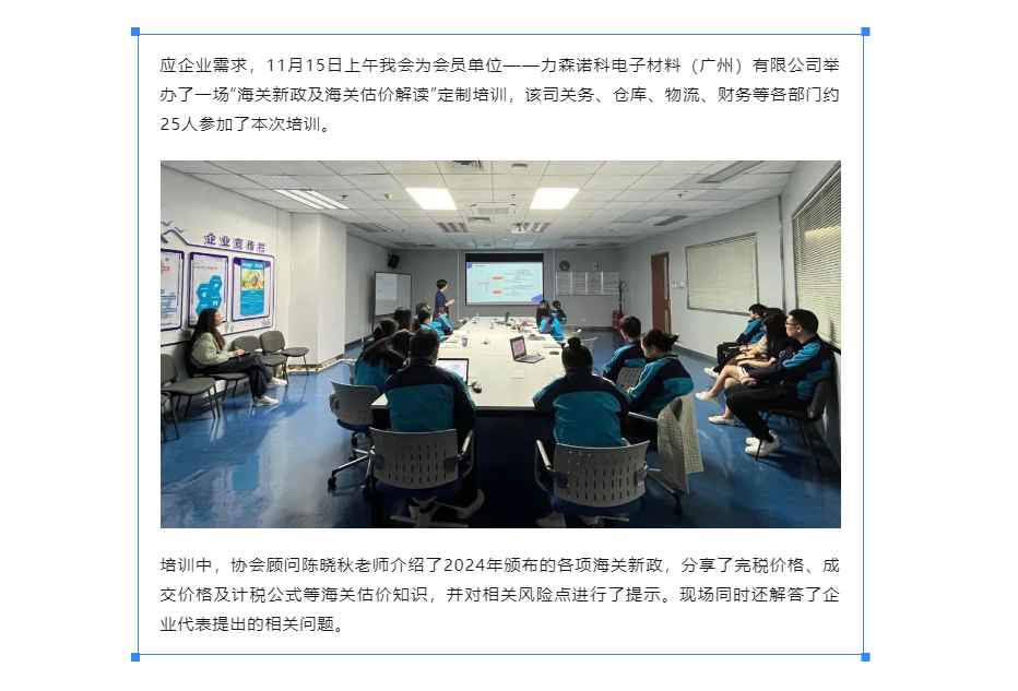 我会为力森诺科举办“海关新政及海关估价解读”定制培训